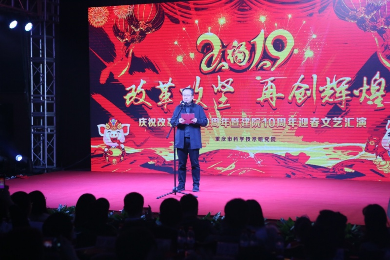 1月25日,由重慶科學技術研究院全體職工自編自演的慶祝改革開放40周年暨建院10周年文藝匯演在3樓報告廳舉行。全體院領導,市人大教科文衛(wèi)主任委員、原院黨委書記皮曉青,市科技局副巡視員曹陽,市知識產權局局長、原院紀委書記李雷霆,武隆區(qū)政協(xié)副主席、原院機電院院長羅斌同志,以及市經信委、市人社局、市紀委派駐市科技局紀檢組、兩江新區(qū)科創(chuàng)局等部門負責同志,院屬院所、研究中心部分退休老領導、老同志同全院200多名單位、部門負責人及職工代表一起用文藝晚會的形式,一起歌頌祖國改革開放四十年來鑄就的輝煌,一起回顧我院在改革開放大潮中砥礪奮進、鏗鏘前行所取得的成就。